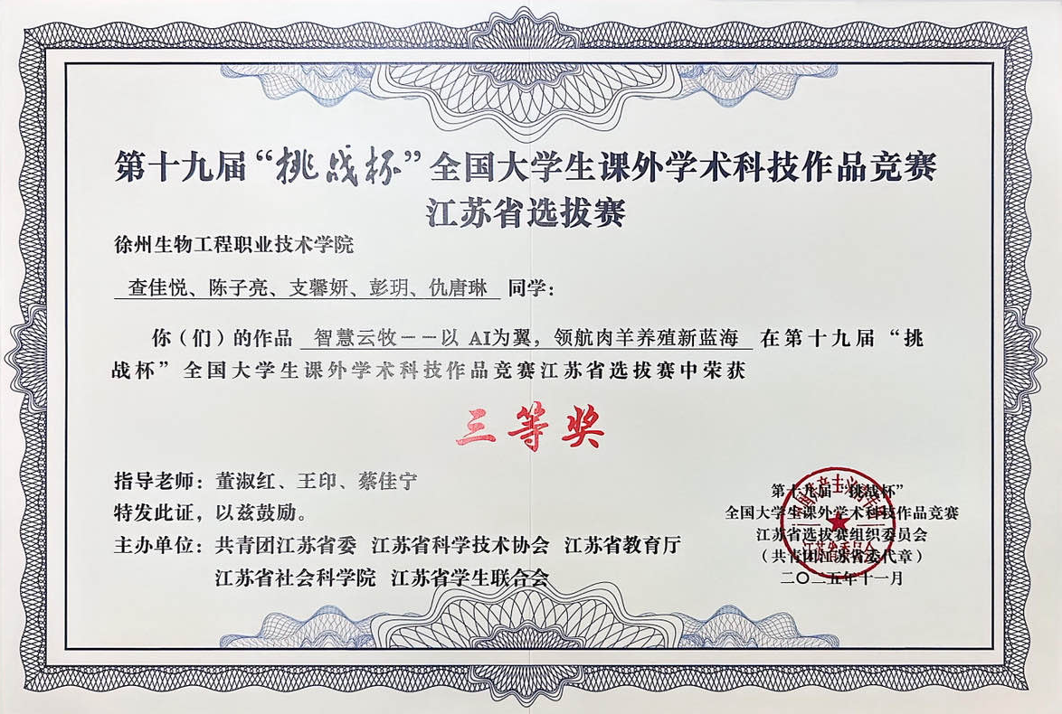 经学院选拔、校内评审、省赛网评等环节,我校来自医学护理学院、生态环境学院、生物装备学院、动物工程学院的4件作品突出重围,共斩获省级三等奖4项,充分展现了参赛团队扎实的专业基础、创新的科研能力与青春奋进的精神风貌。